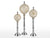 Farklı yüksekliklerdeki üç parça (51 cm, 42.5 cm, 35.5 cm), dinamik bir kompozisyon oluşturur. Uzun metal ayaklıklar, klasik sütun mimarisinden ilham alır ve kürelere görkemli bir yükseklik katar. Siyah kaideler, bej sedef ve gümüş metal arasında mükemmel bir kontrast yaratmaktadır.